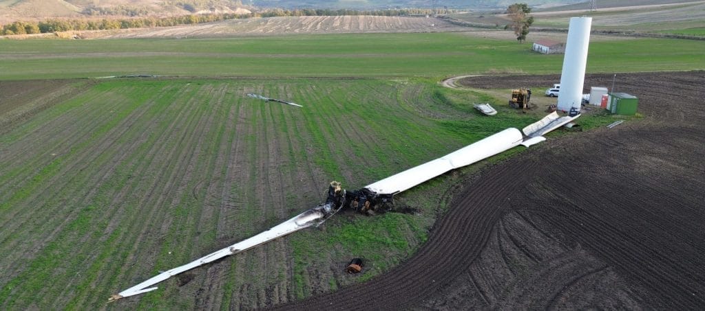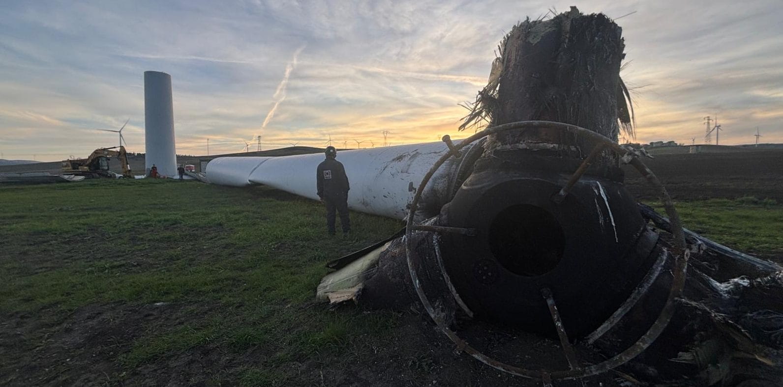 In December, a wind turbine blade caught fire. The fire, which originated in the motor, seriously compromised the integrity of the 80-metre-high structure, causing structural failure and the collapse of the upper part of the tower.